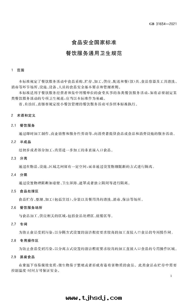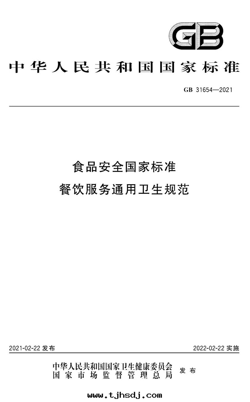 由國(guó)家(jiā)衛生(shēng)健康委員会(huì)和國(guó)家(jiā)市(shì)场(chǎng)监督管(guǎn)理(lǐ)總(zǒng)局(jú)聯合發(fà)布(bù)的(de)《GB31654-2021食品安(ān)全(quán)國(guó)家(jiā)标(biāo)準餐飲服(fú)务通(tòng)用(yòng)衛生(shēng)規範》于(yú)2022年2月(yuè)22日(rì)正(zhèng)式施行。