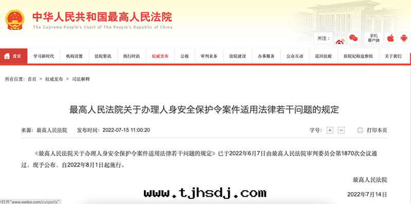 辦(bàn)理(lǐ)人(rén)身(shēn)安(ān)全(quán)保護令案(àn)件(jiàn)司法(fǎ)解(jiě)釋(2022年8月(yuè)1日(rì)起(qǐ)施行)