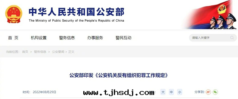近日(rì),公(gōng)安(ān)部(bù)制定(dìng)印(yìn)發(fà)《公(gōng)安(ān)機(jī)關(guān)反(fǎn)有(yǒu)組織犯罪工作(zuò)規定(dìng)》,自(zì)2022年10月(yuè)1日(rì)起(qǐ)施行。