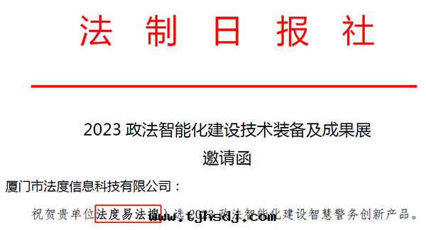近日(rì),由中(zhōng)央政(zhèng)法(fǎ)委機(jī)關(guān)報《法(fǎ)制日(rì)報社》主(zhǔ)辦(bàn)的(de)“2023政(zhèng)法(fǎ)智能(néng)化(huà)建设創新(xīn)案(àn)例及(jí)論文(wén)征集宣傳活動(dòng)”評選結果(guǒ)揭晓公(gōng)布(bù)。廈門(mén)市(shì)法(fǎ)度(dù)信(xìn)息科技有(yǒu)限公(gōng)司(简稱:法(fǎ)度(dù)信(xìn)息)自(zì)主(zhǔ)研發(fà)的(de)智能(néng)執法(fǎ)産品“法(fǎ)度(dù)易法(fǎ)搜”榮獲“智慧警务創新(xīn)産品”。此前(qián)法(fǎ)度(dù)信(xìn)息旗(qí)下智能(néng)執法(fǎ)系列産品:法(fǎ)度(dù)智能(néng)笔(bǐ)录(lù)系統、法(fǎ)度(dù)e法(fǎ)通(tòng)、法(fǎ)度(dù)視證通(tòng)也(yě)曾獲得該獎項。