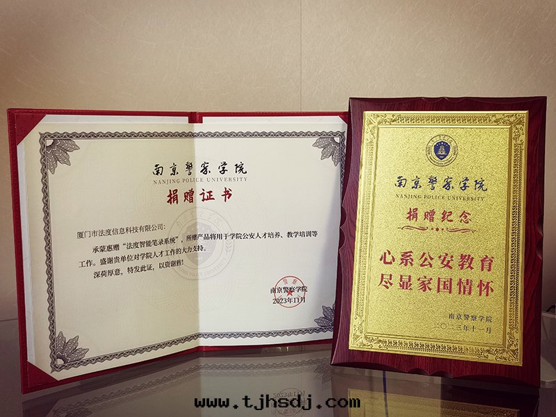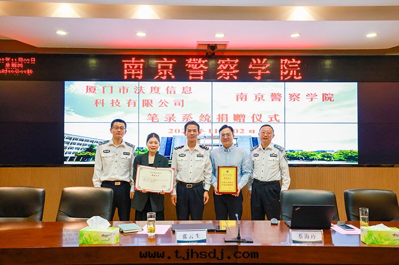 11月(yuè)2日(rì),南(nán)京(jīng)警察學(xué)院(yuàn)舉行廈門(mén)法(fǎ)度(dù)智能(néng)笔(bǐ)录(lù)捐贈仪式。仪式上,廈門(mén)市(shì)法(fǎ)度(dù)信(xìn)息科技有(yǒu)限公(gōng)司向(xiàng)南(nán)京(jīng)警察學(xué)院(yuàn)的(de)偵查學(xué)院(yuàn)捐贈法(fǎ)度(dù)智能(néng)笔(bǐ)录(lù)系統,用(yòng)于(yú)日(rì)常教學(xué)和研究。南(nán)京(jīng)警察學(xué)院(yuàn)叶衛副院(yuàn)长(cháng),南(nán)京(jīng)警察學(xué)院(yuàn)偵查學(xué)院(yuàn)厲開(kāi)平副院(yuàn)长(cháng)、慶海(hǎi)濤(tāo)教授、李濤(tāo)副教授,法(fǎ)度(dù)信(xìn)息科技有(yǒu)限公(gōng)司张(zhāng)雲(yún)生(shēng)總(zǒng)經(jīng)理(lǐ)等人(rén)參與(yǔ)捐贈仪式。
